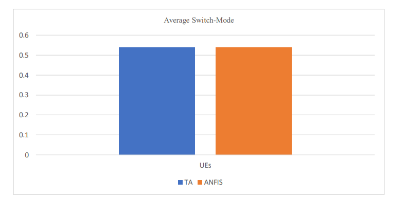Figure 10. Average switch-mode times of the UEs using ANFIS and TA in D2D communications