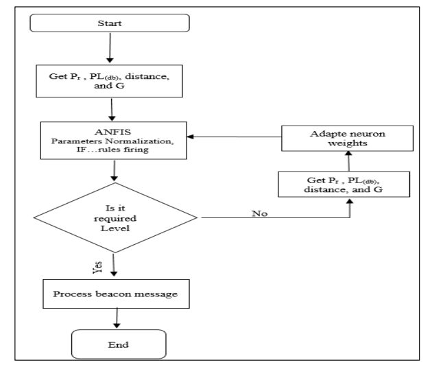To cope with the uncertainty and dynamicity of learning the four parameters, we employ an adaptive neural fuzzy network. The uncertainty is handled by the fuzzy part, which applies “degrees of truth” rather than the discrete outcome (true–false or 1–0) in conventional computing. Meanwhile, the neural network part is responsible for adapting unknown learning patterns. The adaptive neural fuzzy network model is based on a knowledgebase and learning algorithms that provide low-cost approximate solutions to lower the delay. The model infers an approximate reasoning decision from inexact knowledge (received power, attenuation, distance, and antenna gain) and unknown patterns to ensure reliable connections.