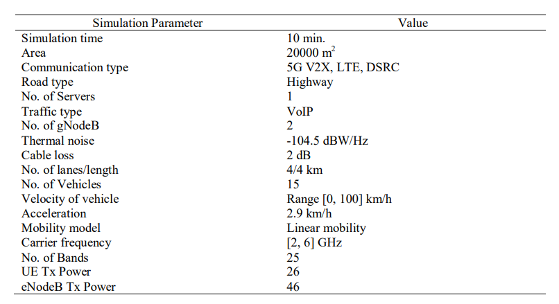 (4) In non-standalone 5G V2X, most researchers have not adopted any infotainment service traffic in a highway scenario or core network (V2N). Herein, the VoIP traffic is considered an infotainment service in a highway scenario using a core network.