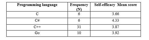 A total of 200 valid responses were accepted from 290 responses after filtering out ineligible responses and removing incompletes and speeders. The data was imported into Jamovi statistical software for analysis. Descriptive statistical analysis was performed to examine the study’s demographics. Participants’ SE and SeBI scores were averaged to obtain a mean score of 5 or less. The interpretation of the SE score was based on [49]. A score between 4.5 and 5 was high, 4.0 – 4.5 average, and scores lower than 4.0 were poor. Spearman’s Rho inter-variable correlation was performed to determine correlations. Spearman’s Rho correlation coefficient measures the strength of the association between variables with a value between -1 and +1. The sign of the Spearman rho coefficient indicates the direction of the association. The statistical significance of the association was determined using the Spearman rho p-value (p). A statistically significant relationship is characterized by a p-value less than 0.05 (p < .05). Non-parametric ANOVA or Kruskal-Wallis test was used to determine if there were significant differences in SE scores between programming language and deployment platform groups.