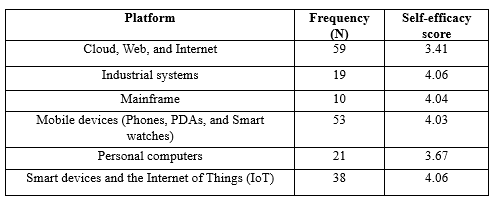 The lack of statistically significant difference in application security self-efficacy scores between programming language groups was another unexpected result. However, the result can be explained by the fact that the primary security activity involving programming language is secure coding, which is the developers’ primary security task. This is supported by the fact that application security self-efficacy differed by deployment platform. Software developers often are not involved in deployment platform security configurations besides those involving code. Deployment platforms also differ by security architecture and nature and prevalence of security vulnerabilities. Deployment platforms, therefore, have security requirements that software developers must learn.