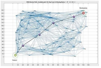 Many researchers solve these problems using different optimization techniques such as protocol optimization, route selection method, algorithms-based optimization, route discovery mechanism, node deployment methodology, etc. The route discovery mechanism mostly helps to minimize the nodes energy usage as well as improve the lifespan of WSN by selecting an efficient route [1][2]. Routing is a process to select the appropriate route to transmit the data from sender to receiver in WSN. Routing is divided into two types, namely, single-hop routing and Multi-hop routing. In single-hop communication, source and destination are directly communicated without using any intermediate nodes in single-hop communication. In multi-hop routing, the source node communicates that destination with the help of intermediate nodes. The sensor node is unable to communicate other nodes larger than radio range of a single node. The multi-hop routing is mostly used in WSN because it extends the network coverage and improves the connectivity