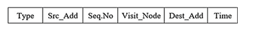 In this format, Type represents the ant type like forward ant and backward ant, and Src_Add illustrates source address. It contains the source node ID. Moreover, serial number of ants is illustrated in Seq.No and Visit_Node store the nodes ID that the number of nodes visited in each node. The Dest_Add indicates the destination address and the ant each time checks whether it is destination. Time represents the ant travelling time from source to destination.