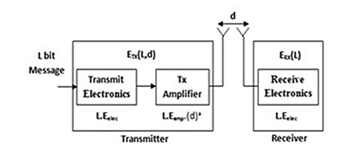 The energy optimization of m-ACO algorithm depends on various energy levels, namely, initial energy, remaining energy, and current energy of the nodes. The Equations (7) and (8)are used and compute the energy usage which is used to find various energy levels [4][5][7]. The transmission energy is calculated by using Equation (7), and received energy is calculated by Equation (8). The structure of these energy models of WSN is described in Figure 8. The parameters and values of energy consumption formula are presented in Table2.