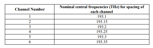 For instance, core networks can transmit about 80 channels by compressing the channels and spacing that 50 GHz apart. To build a fixed grid network 50GHz channel spacing is used to transmit data rate. 193.10 THz will serve as the reference frequency for this design. A single carrier network is made up of a fixed grid (50 GHz) that transmits either a single line rate or a mixed line rate. Figure 1 illustrates the fixed grid network channel spacing. Capacity scaling is possible in a communication system by exploring modulation so Quadrature Phase Shift Keying (QPSK) and Quadrature Amplitude Modulation (QAM) are explored. To increase the bit rate per second Dual-Polarizations (DP) technique is adopted[29].