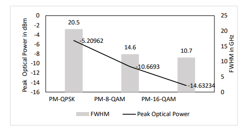 Figure 9. Different modulation schemes its peak Optical power and FWHM
