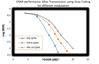 Figure 11. OSNR performance of transmitted signal using Gray Coding