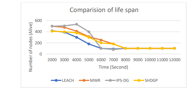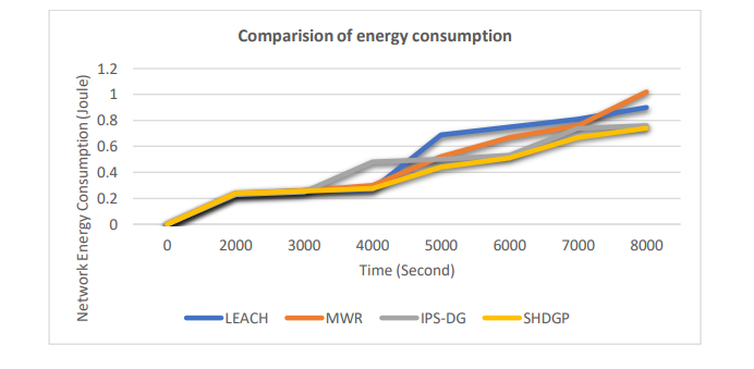 The key benefits of energy usage, path length and lifespan in wireless sensor networks are lower power consumption, higher communication range, and enhanced network dependability, network reliability, since it directly affects the nodes’ batteries, energy use is crucial for the network’s reliability. The number of hops a message must make to get to its destination is determined by the path length, which is crucial for effective communication between nodes. Lastly, lifespan is important for ensuring that the network remains operational over a long period of time. However, the sensors depend on batteries or recharged frequently because they cannot be used for extended periods of time. Additionally, the limited range of the sensors can limit the network’s coverage area and make it difficult to monitor larger areas. Additionally, the signal strength of the sensors can deteriorate with time due to environmental variables including interference from other wireless devices or physical impediments, which can result in shorter life spans. 4.1. Energy Consumption Several algorithms were utilized to compare the network’s energy consumption based on energy usage, as shown in Figures 7. Among the algorithms examined, SHDGP performed better, but it still requires improvements in energy consumption over IPS-DG. SHDGP’s energy usage increased after 8000 seconds, implying that IPS-DG might consume less energy than SHDGP. LEACH uses the most energy possible because of its multi-hop routing design, which requires multiple clusters to transport sensed data packets to a fixed sink over a long distance. In contrast, MWR, IPS-DG, and SHDGP use mobile collectors to gather data, resulting in varying levels of energy savings. MWR forwards data packets using similar pairs, whereas LEACH requires significantly more transmission between the data collector and compatible pairings. IPS-DG and SHDGP are single-hop-based networks that conserve energy by transmitting at a lower power level, unlike LEACH, which uses fixed data collectors. Figure 7 Comparison of energy consumption with different routing protocols 4.2. Life Span The lifespan of a wireless sensor network is the duration between its nodes’ activation and deactivation. The addition of a spare node can prolong the network lifespan. Several algorithms have been proposed to enhance the network lifespan, as demonstrated in Figure 8. LEACH has the shortest network lifespan, with its initial node deactivating after approximately 2800 seconds. In contrast, the other three algorithms surpass LEACH’s performance. When the source node and data gatherer are far apart, the transmission radius decreases. LEACH’s low-energy scheme and long-distance transmission result in uneven energy consumption, causing the sensors to fail prematurely. However, since MWR, IPS-DG, and SHDGP employ mobile data collectors, they have a longer network lifespan than LEACH. The compatibility pairs acting as forwarders in MWR is one of the reasons for its limited lifespan. Although IPS-DG and SHDGP use single-hop communication, IPS-DG increases its network lifespan by optimizing mobile collector efficiency. Figure 7 Comparison of energy consumption with different routing protocols 4.3. Path Route A path route in any network is a way to travel from a source to a destination, and the shortest path method is used to achieve the desired outcome. The path length is measured by the time it takes to travel from the initial node to the final destination node. Numerous algorithms were utilized to compare the length of the intended route, as illustrated in Figure 9. LEACH collects data using a stationary sink with a zero-length, resulting in the longest route for each round. SHDGP, which constructs a tree structure to move from one node to another, produces the longest path route. Meanwhile, the path route length remains constant in IPS-DG, even though the coverage rate remains unchanged when the network model and transmission range are established. Figure 9 Comparison of path route with different routing protocols Figure 10 Performance comparison with different routing protocols Figure 10. Shows the performance comparison different routing protocols such as LEACH, MWR, SHDGP and IPS-DG. Based on the least amount of energy used, the shortest path, and the longest life span, a rating has been determined. Our proposed model outer performs among the different routing protocols. 5. CONCLUSION. This research work presents a novel itinerary planning schema data gatherer (IPS-DG) model for wireless sensor networks (WSNs) integrated with mobile devices. The proposed model is aimed to find an optimal transportation path with minimum distance coverage over a comprehensive sensor node. The path planning module (PPM) is used to organize the transportation path considering energy usage, path length, and lifespan with multiple protocols. For this, the simulations were conducted under various conditions to demonstrate that the proposed protocol has considerable benefits in terms of energy usage, path length, and lifespan. MATLABR2020b software was used to implement the proposed technique. These results show that the suggested protocol has significant advantages in energy usage, path length, and lifespan. The comparative results show that IPS-DG outperforms Low Energy Adaptive Clustering Hierarchy (LEACH), Multi-Hop Weighted Revenue (MWR), and Single-Hop Data gathering Procedure (SHDGP) in terms of lifespan, energy consumption, and path length. The proposed model could be beneficial in improving the network performance of WSNs integrated with mobile devices. CONFLICT OF INTEREST The author has declared no competing interests for publication. REFERENCES [1] S. Kumar, S. C. Sharma, and R. Kumar, βWireless Sensor Network Based Real-Time Pedestrian Detection and Classification for Intelligent Transportation System,β Int. j. math. eng. manag. sci., vol. 8, no. 2, pp. 194β212, Apr. 2023, doi: 10.33889/IJMEMS.