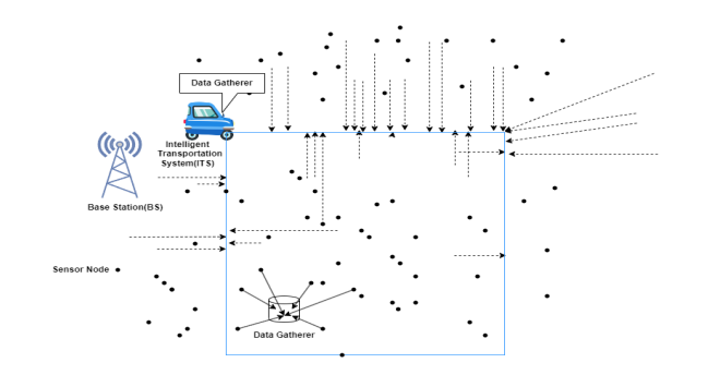 Figure 2 illustrates the framework of the proposed approach, which involves a sensor node that collects local information through its sensors. These nodes are anticipated to move along a predetermined transmission path [23] or a defined transmission point. Unlike traditional schemes that require the collector to visit every sensor node to collect data and stores it in its memory and moves to a new location, where it can collect data from additional sensor nodes. The mobile collector continues to move around the network in a pre-defined path until it reaches a base station, where it uploads the collected data. This scheme involves the use of a sensor node, which is typically a vehicle equipped with wireless communication capabilities. The vehicle passes through the several group of nodes to transmit the data to the leader node, facilitating the data gathering process.