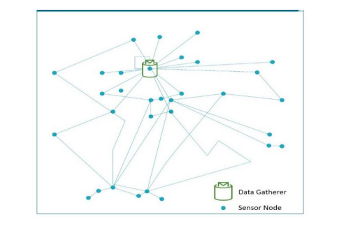 In Figure 1, nodes are clustered around a fixed sink according to a predetermined protocol. After the nodes have been grouped, a supervisor node is chosen as the data gathering point. The network is randomly spread out over an area.