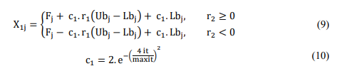 The Newtonian displacement process of the salp colony was modelled by the SSA algorithm using the formulation below. The process involves determining the fitness of salps, identifying the optimal food position Fj , and then having the leading Salp X1j move towards it using equation (9) [34].
