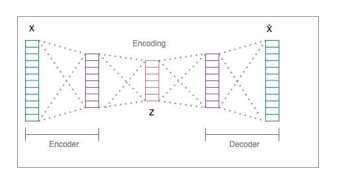 As described in [7] and shown in Fig. 3, a classic autoencoder consists of an encoder and a decoder, implemented as fully connected neural networks. The encoder compresses the network input x into a lower dimensional latent representation z defined by the bottleneck. The decoder takes the output of the encoder and decodes the latent representation back to the original input x̂ . The information preserved in hidden neurons is considered as the encoded features. The learning process is based on minimizing the reconstruction error, which is assessed by comparing the reconstructed input with the original one. The learned representation corresponds to the final hidden state of the encoder network and acts as a summary of the input sequence.