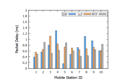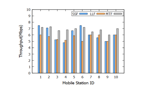Table 3 . Throughput and Jain’s fair index of SSF, LLF , and MTF with different numbers of MSs