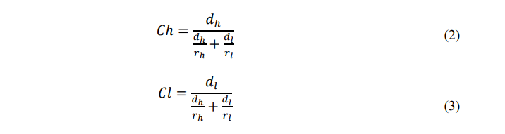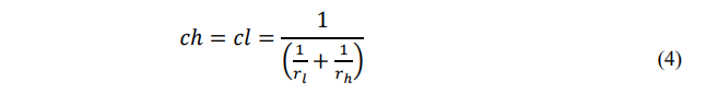 The actual channel through put for high rate (Ch)and low rate (Cl) links are computed as follows: