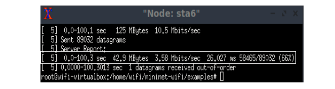In this experiment, we set the simulation time to 100 seconds and each station transfers data to the target at a rate of 10 Mbps.