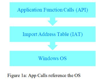 Application Programming Interface (API) hooking is a technique used by Shim Infrastructure. It explicitly forces linking, forcing Windows’ API requests to be forwarded to other code—the Shim—by the linking mechanism. Under the Windows Portable Executable (PE) [10] and Common Object Format (COFF) [11] Specification, the data locations in this header serve as an intermediary layer between the application and the linked file. The Import Address Table is used to make calls to external binary files (IAT). As a result, a call into Windows appears to the system as the picture displayed below, as depicted in Figure 1a. Researchers may replace a reference to a procedure in the equivalent Shim code with the location of the Windows method identified in the import table, as shown in Figure 1b. When the program is loaded, this indirection takes place for files that are statically linked to.dll files. Dynamically linked.dll files can likewise