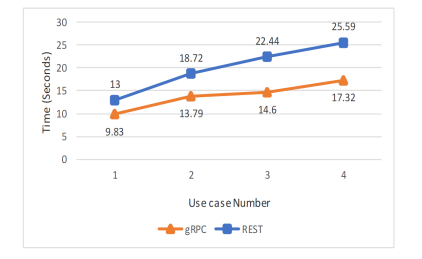 Figure 12. gRPC vs REST-based service execution time for designed use cases (Two Request