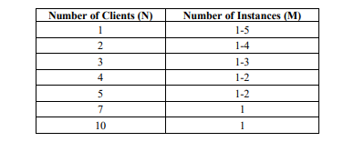 To develop and analyze the proposed orchestration model, the system is initially tested on Ubuntu 18 as the platform, employing the Cirros Operating System as the server image with a size of 15.55 MB, allocating 256 MB of Random Access Memory to each server image, ranging from 1 to 4 Virtual CPUs (VCPU), and leveraging the OpenStack Cloud Operating Platform. The performance is obtained on Ubuntu-18 with 8 gigabytes of random-access memory (RAM) and 4 core processors. The results are carried out for the ‘N’ number of clients and each client contains the ‘M’ number of instances. Table I shows the simulation range for the ‘M’ number of instances across the ‘N’ number of clients. For example: for three clients, the results are obtained for 1, 2, and 3 instances per request each.