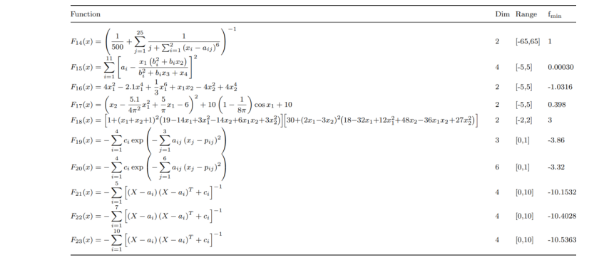 Figure 5. Fixed-dimensional Multimodal benchmark functions
