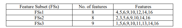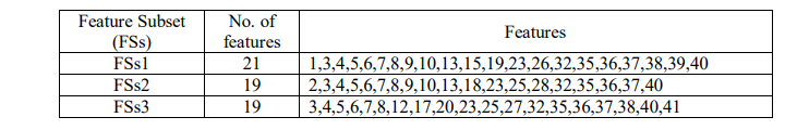 Table 2. Feature Subsets of NSL-KDD dataset using PFM algorithm