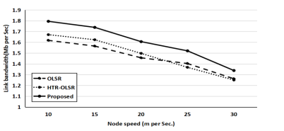Figure 7.Comparison of throughput of OLSR, HTR-OLSR and proposed algorithms