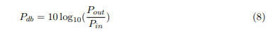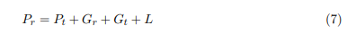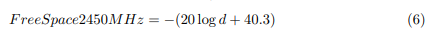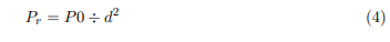 The received power (Pr) can be mathematically represented as the multiplication of the transmitted power (Pt) and the ratio of the wavelength λ to the product of 4, and the distance. The equation can be expressed in an alternative form as GtG2 r in equations 8 and 9 The power received, denoted as Pr, is impacted by many factors. The analysis incorporates the components of transmitted power, denoted as Pt, which are measured in units of either Watts or milliwatts. In addition, the carrier wavelength, represented by the symbol λ and measured in meters, is of significant significance. An additional crucial determinant in the equation is the spatial separation between the transmitting device and the receiving device, denoted as d and quantified in units of meters. Furthermore, the power received is subject to the influence of the transmitter’s antenna gain (Gt) and the receiver’s antenna gain (Gr). The term ”antenna gain” refers to the measurement of power radiation in a certain direction. However, the mathematical expression for calculating the increment in decibels can be represented as: