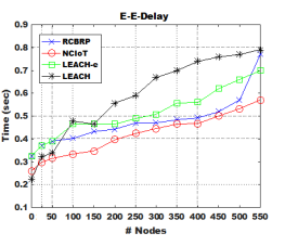 A network simulation using NS2 was conducted to assess the performance of the proposed upgraded NCIoT protocol in networks with high and low node densities. The simulation results of the NCIoT protocol were compared with other relevant study protocols, namely LEACH-e, LEACH, and RCBRP. The evidence obtained through NS2 simulation provided strong support for the utilization of IoT technology by nodes to enhance their responsiveness and preparedness in various connection scenarios. A radio propagation range was employed, utilizing a transmission power of 0.28 watts. The system lets individual nodes transmit or receive data packets to or from next to them within a maximum range of 250 meters. The researcher employed the IEEE 802.11b protocol at the data-link and physical levels to facilitate the sharing of multimedia content via wireless networks. The network simulator utilized the random Way Point mobility model, with a roaming region measuring 1600 x 1600 m2. During the simulation, the movement or relocation of each node within clusters occurred. The initial velocity, which was measured at 1