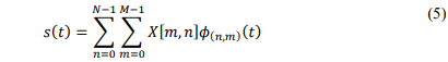 where 𝑔𝑡𝑥(𝑡) ≥ 0, for 0 ≤ 𝑡 < 𝑇 is a pulse shaping waveform. We can define the set of orthogonal basis functions 𝜙(𝑛,𝑚)(𝑡) used to shape M-QAM symbols as it follows [7,9,10]: