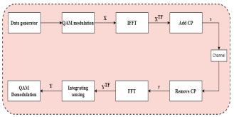 However, the OTFS approach is applied in High mobility conditions. The former analysis was so convenient to guide our sight to suggest a framework defining our contribution. The focus is on helping to develop a hybrid OTFS-OFDM system that is based on user estimation. This estimate is based on the estimate speed approach employed by the ISAC radar application. Before that let’s give the principle of ISAC technique. In fact, the ISAC radar is based on the Matched Filter Fast Fourier MF-F algorithm. This algorithm has a significant impact on the improvement of detection parameter estimation in radar ISAC (Integrated Sensing and Communication). Indeed, this system has several advantages thanks to, a precision is enhanced by the use of the Fibonacci sequence. The MF-F algorithm is able to obtaining an estimation of detection parameters, with fractional precision. This improves the accuracy the estimation. On the other hand, efficiency increases. In fact, the MF-F algorithm reduces the number of comparisons needed, making the algorithm more efficient. In addition, the MF-F algorithm has demonstrated robustness in numerical simulations, which means it can provide accurate estimates even under difficult