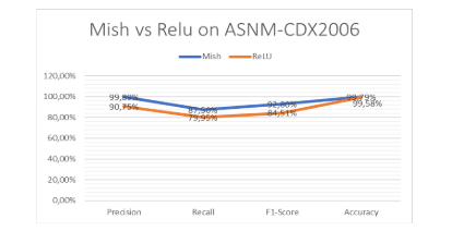 Figure 4. Mish and ReLU performance on ASNM-CDX2006
