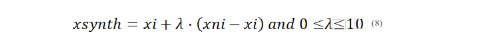 The formula for SMOTE is provided as follows:
