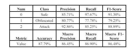 Applying the ReLU in the CNN-BiGRU model to the ASNM-CDX2009 dataset as shown in Table 8 produces results, including an accuracy of 99.58% and a macro F1-score of 84.51%.