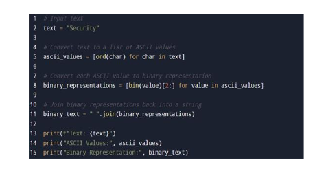 Figure 2. Message to binary sequence – Code
