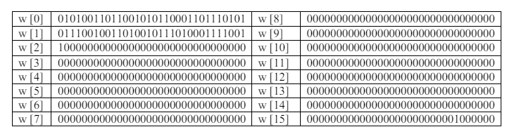 w [16] = w [16-3] XOR w [16-8] XOR w [16-14] XOR w [16-16]