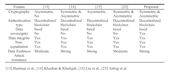 For the heterogeneous and scalable IoT systems, Khashan & Khafajah proposed a hybrid centralized and blockchain-based authentication architecture for heterogeneous IoT systems based on a lightweight cryptographic methods [14]. They argued that centralized authentication schemes is inappropriate for cross-domain authentication and limit the scalability of IoT networks. So, edge servers were deployed to provide centralized authentication based on blockchain networks in their architecture. They argued that their architecture provides authentication, secure identity management, data integrity, data freshness, key refreshment and non-repudiation and is strong against various attacks. However, their architecture does not provide any details on the data management for the system and thereby it does not consider any data sovereignty.