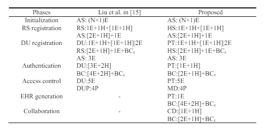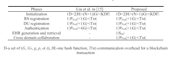 In comparison to Liu et al.’s scheme, the computational burden during the authentication phase of the proposed system is reduced, as we have streamlined the computational overhead of ZeroKnowledge Proofs (ZKP) more than Liu et al.’s scheme. However, we provide EHR generation and retrieval and cross-domain collaboration