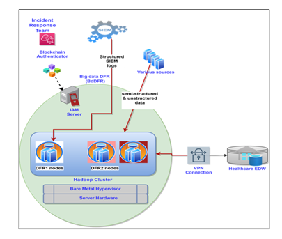The Hadoop cluster is integrated with the healthcare EDW using a secure VPN connection. The benefits of this integration are vast for most organisations [24]. However, in the context of the current work, it would enhance the holistic DFR and IR approach and provide more context to investigations.