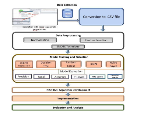 The rest of the paper is organized as follows: Section 2, reviews related work on RPL security and machine learning applications in IoT networks. Section 3 describes the methodology for designing and evaluating machine learning models and the NANTAR algorithm. Section 4 presents the NANTAR algorithm development. Section 5 Describes the experimental design and simulation setup. Section 6 reports and analyzes the results. Section 7 concludes the paper.