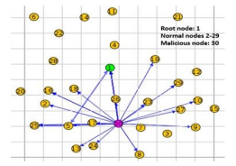 Figure 7: Rank attack launched by a malicious node