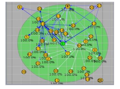 Table 4 outlines the simulation parameters used to control the network topology, traffic pattern, and attack type. We varied the number of nodes from 10 to 40 to simulate different network sizes. Additionally, packet rates ranged from 10 to 30 packets per second to simulate varying traffic loads. We incorporated three types of attacks—Rank, blackhole, and Wormhole—to simulate different security threats. An example of a large network topology with 40 nodes is depicted in Figure 6, where the green node represents the root node, and the yellow nodes denote normal nodes.