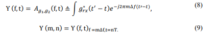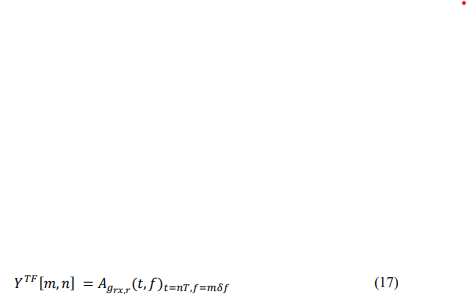 In high mobility scenarios, the transmitted signal can undergo various changes, resulting in shifts in both the time and frequency domains. Consequently, the received signal matrix 𝑌 𝑇𝐹[𝑚, 𝑛] is obtained by sampling the crossambiguity function 𝐴𝑔𝑟𝑥,𝑟 (𝑡, 𝑓) according to [13], [14], [16],[30],[31],[32]