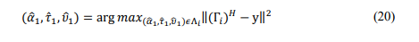 where (𝛼̂1, 𝜏̂1, 𝜐̂1) are target parameters the estimated Doppler and 𝑐0 the velocity of sight. The estimated delay and Doppler can be presented firstly based on the indication expression [30], [31] as follows: