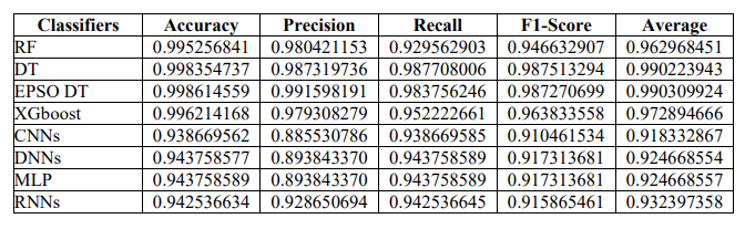 Table 11. Improving ML Classifier Performance with EPSO on CSE-CIC-IDS-2018 Dataset.
