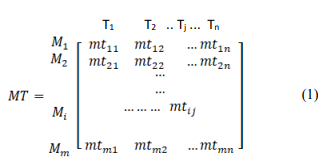 Where mtij is the performance score of the ithsecurity mitigation control with respect to the jth attack technique, m is the number of mitigation controls and n is the number of techniques of attacks.