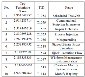 Table 1. Top 10 ATT&CK techniques score V13[49]