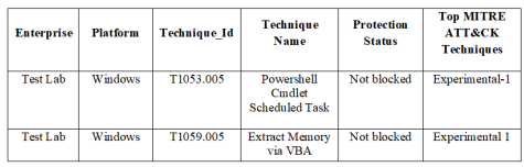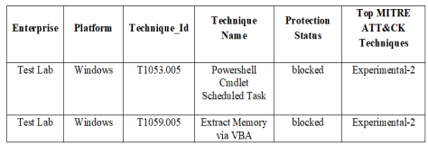 Thus, we employ the Caldera2 platform to simulate a virtual complex cybersecurity attack campaign that is composed of top10 attacktechniques. The experiment simulates a two-pronged cybersecurity attack. The first attack is “PowerShell Cmdlet Scheduled Task” which enables adversaries that may abuse the “Windows Task Scheduler” to perform task scheduling for the initial or recurring execution of malicious code. The second attack is “Visual Basic for Applications (VBA) and VBScript”. VBA is an event-driven programming language built into Office applications. VBA enables documents to contain macros used to automate the execution of tasks and other functionalities on the host.