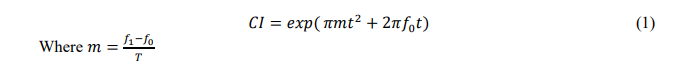 IMWhere the signal sweeps from f0 to f1. such that T is the duration of the sweeping period.