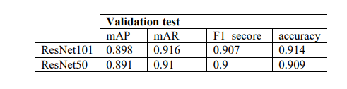 Table 4. The evaluation values of our model for AMRusing ResNet101 and ResNet50