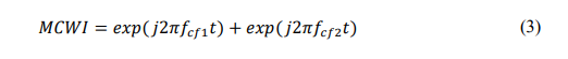Multi Continuous Wave Interference (MCWI): refers to the interference that arises from several continuous wave transmissions interfering with a wireless communication system at the same time. These interfering signals can also have varied frequencies and power levels, and each interference can be characterized by continuous waveforms as shown by the equation (3).