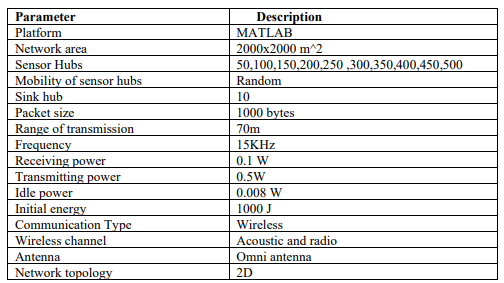 The suggested EBbHR is created and run using MATLAB environment. The network environment is initially established with the necessary nodes. The performance parameters of a novel EBbHR for energy-efficient routing are also assessed and contrasted with those of existing widely used approaches. Table 2 lists the simulation settings needed to implement the suggested system.